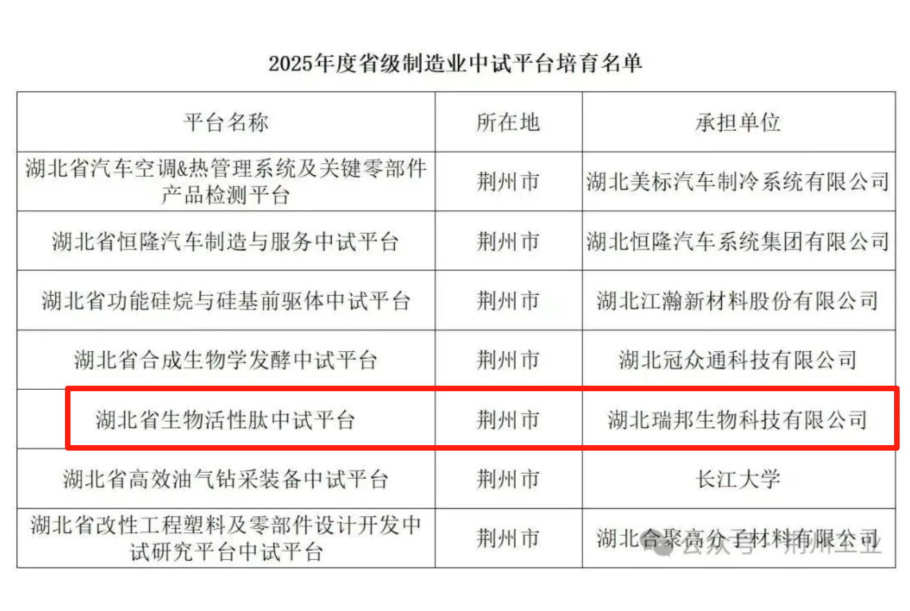 湖北瑞邦生物科技有限公司,成立于2007年12月,位于湖北省荊州開發(fā)區,公司注冊資本1億元,公司占地面積400余畝,目前在崗職工300余人,年產能10000噸,主營生物活性肽系列產品(包括各類動物肽、植物肽)。公司自2005年起開始關注研究生物活性肽生產技術,是國內生物活性肽行業創始企業之一,亦是生物活性肽生產企業的領軍企業;目前公司產能位于全國第一,全世界第三。